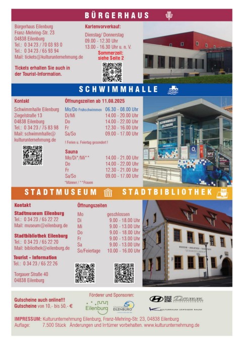 IMPRESSUM: Kulturunternehmung Eilenburg, Franz-Mehring-Str. 23, 04838 Eilenburg